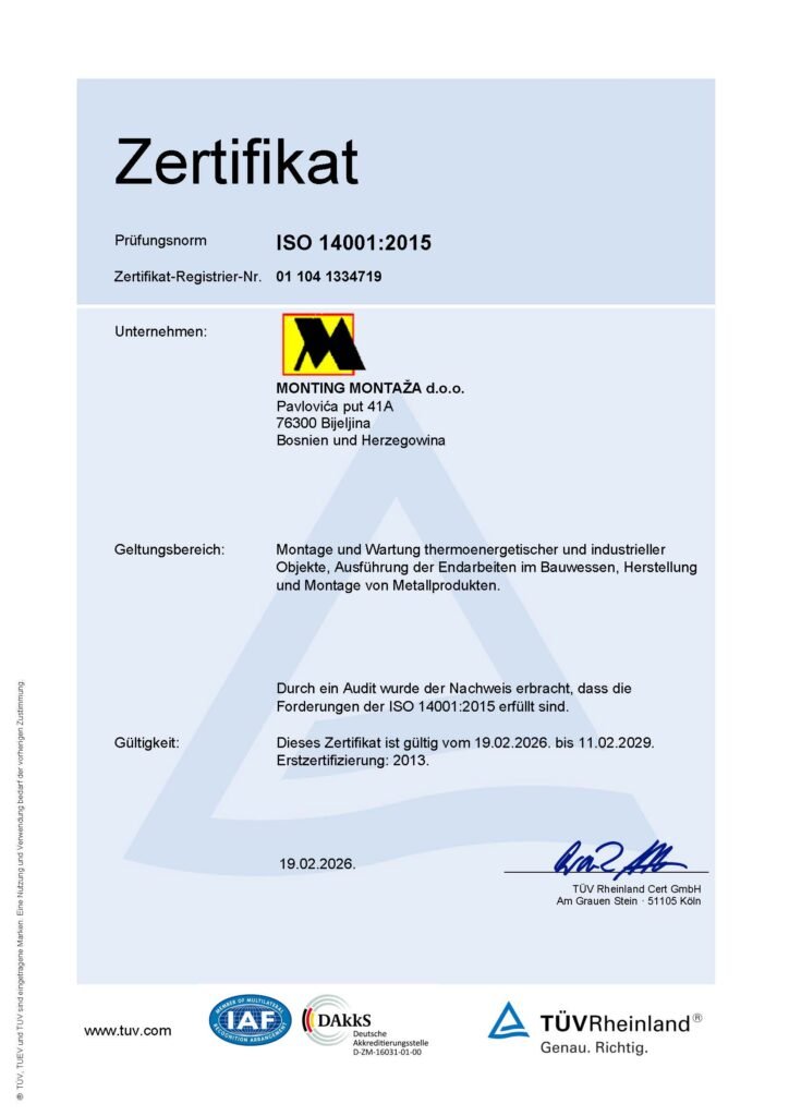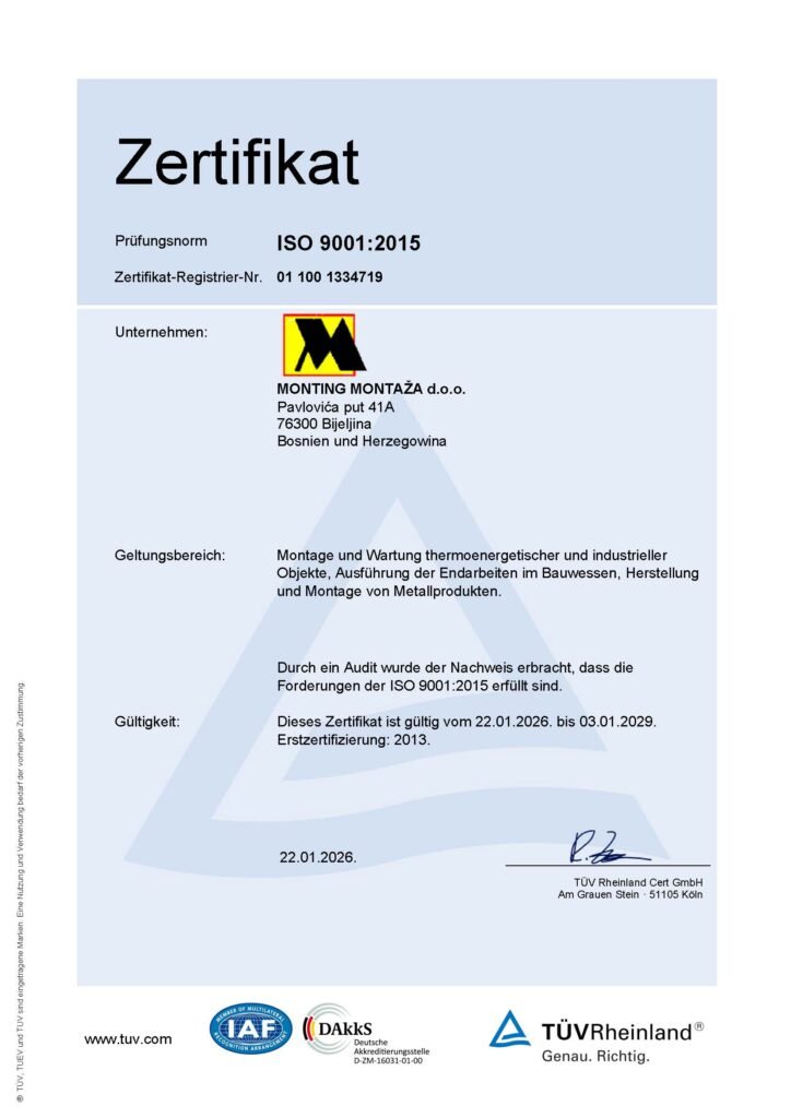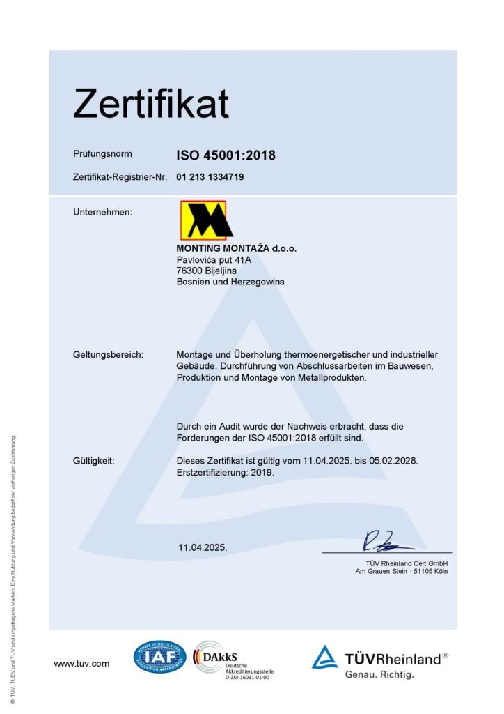 MONTING MONTAŽA wurde 1996 gegründet. und hat sich seitdem zu einem erfolgreichen Unternehmen entwickelt, das für seine qualitativ hochwertige und termingerechte Auftragsabwicklung bekannt ist und somit ein zuverlässiger Geschäftspartner ist. Das Fundament unseres Unternehmens bilden hochmotivierte und geschulte Mitarbeiter, die bereit sind, alle Anforderungen unserer Kunden hinsichtlich Qualität und Terminen zu erfüllen.
